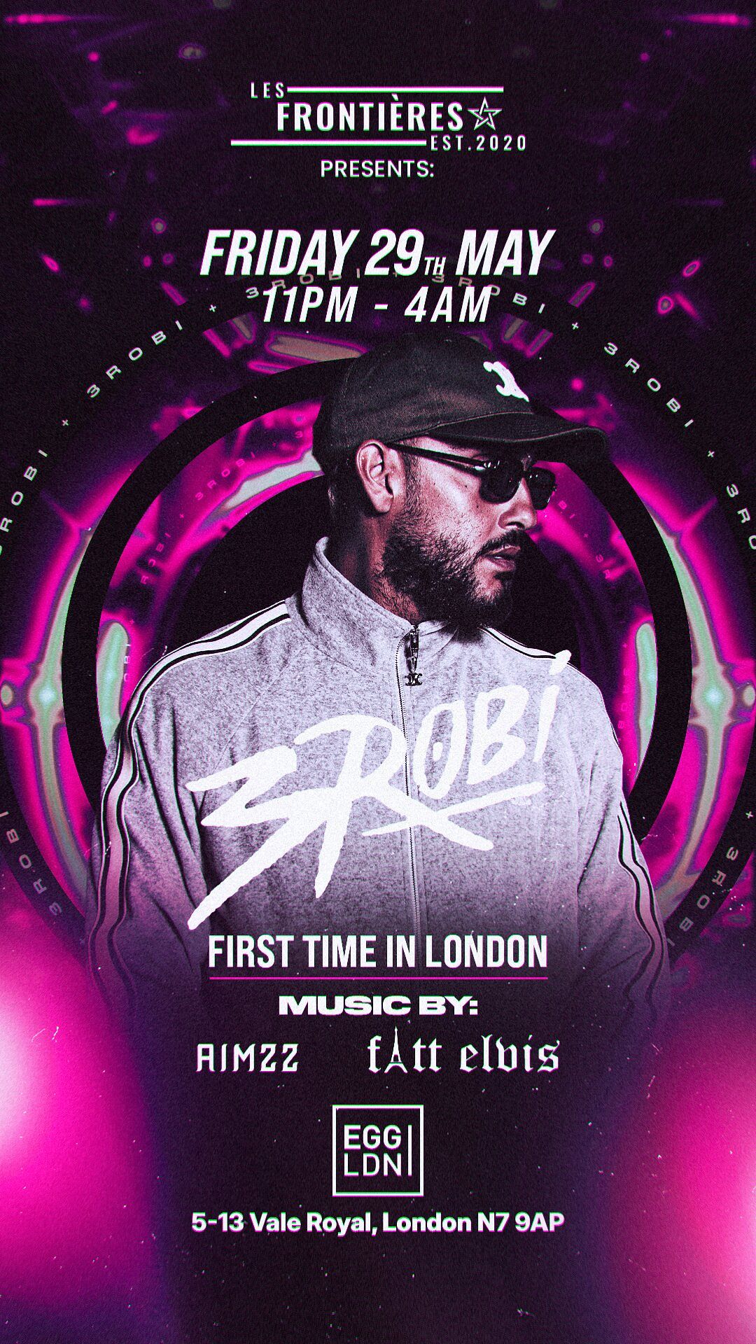 Previous Event Next Event Les Frontières Pres: 3robi FRIDAY 29TH MAY 2026 Live at EGG X Les Frontières Pres: 3robi On Friday 29th May, Egg London…