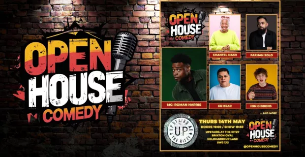 WELCOME TO OPEN HOUSE COMEDY! A BRAND NEW COMEDY NIGHT IN THE HEART OF BRIXTON, UPSTAIRS AT THE RITZY. HOSTED BY ROMAN HARRIS (LEICESTER SQUARE…